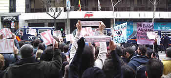 “Around 6PM local time in Madrid, an estimated 3,000-5,000 protesters gathered spontaneously in front of the headquarters of Spain’s ruling Popular Party (Partido Popular, or PP), located on calle Genova. Participants shouted slogans against media manipulation, and carried signs asking, “Who did it?”. Flashmobs spread by SMS throughout the country, with parallel gatherings quickly emerging in other cities.