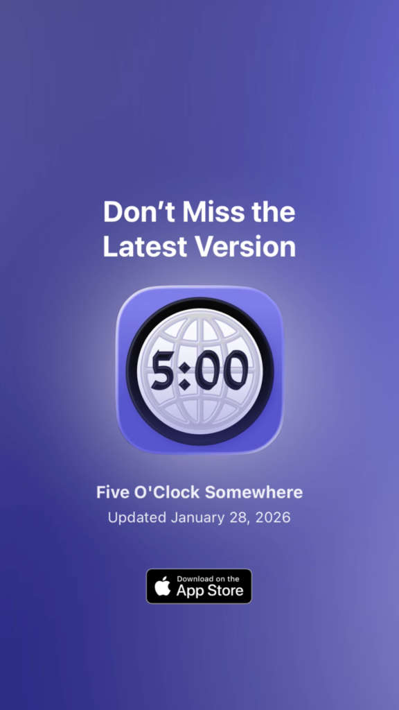 Five O’Clock Somewhere 1.0.4 Update Now Available